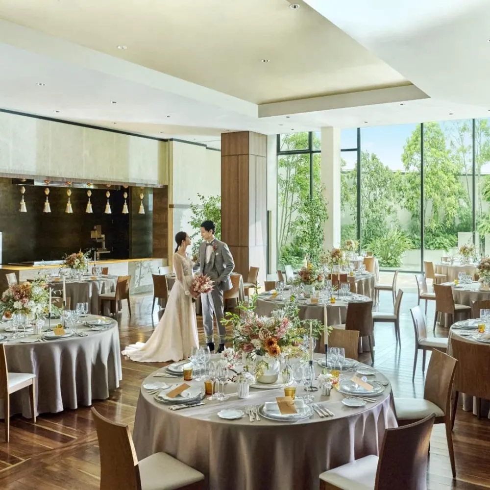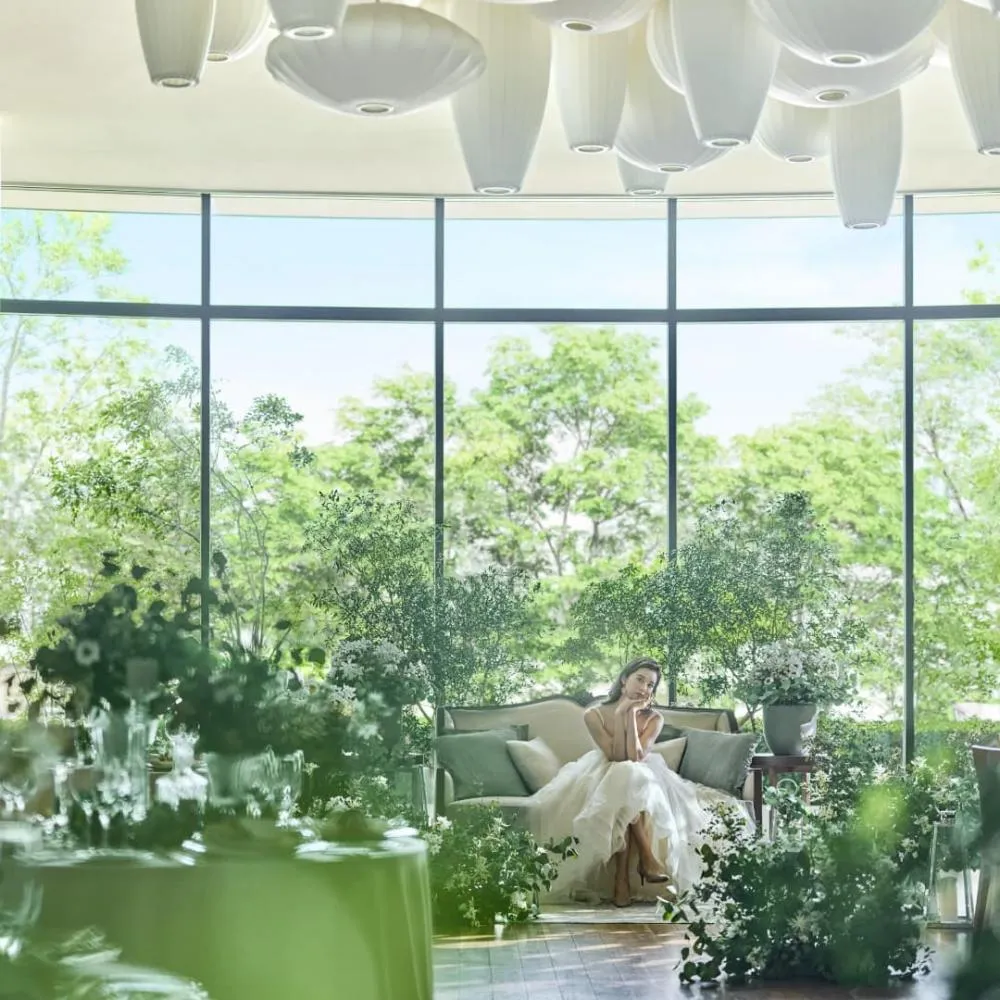 庭の緑と涼やかな水音、木の温もり...自然素材の持つ寛ぎに和の情緒が息づくガーデン・リビング。水辺に建つ凛とした幻想的な空間。水と緑を背景に自然を楽しめる全天候型バンケットがお得に!